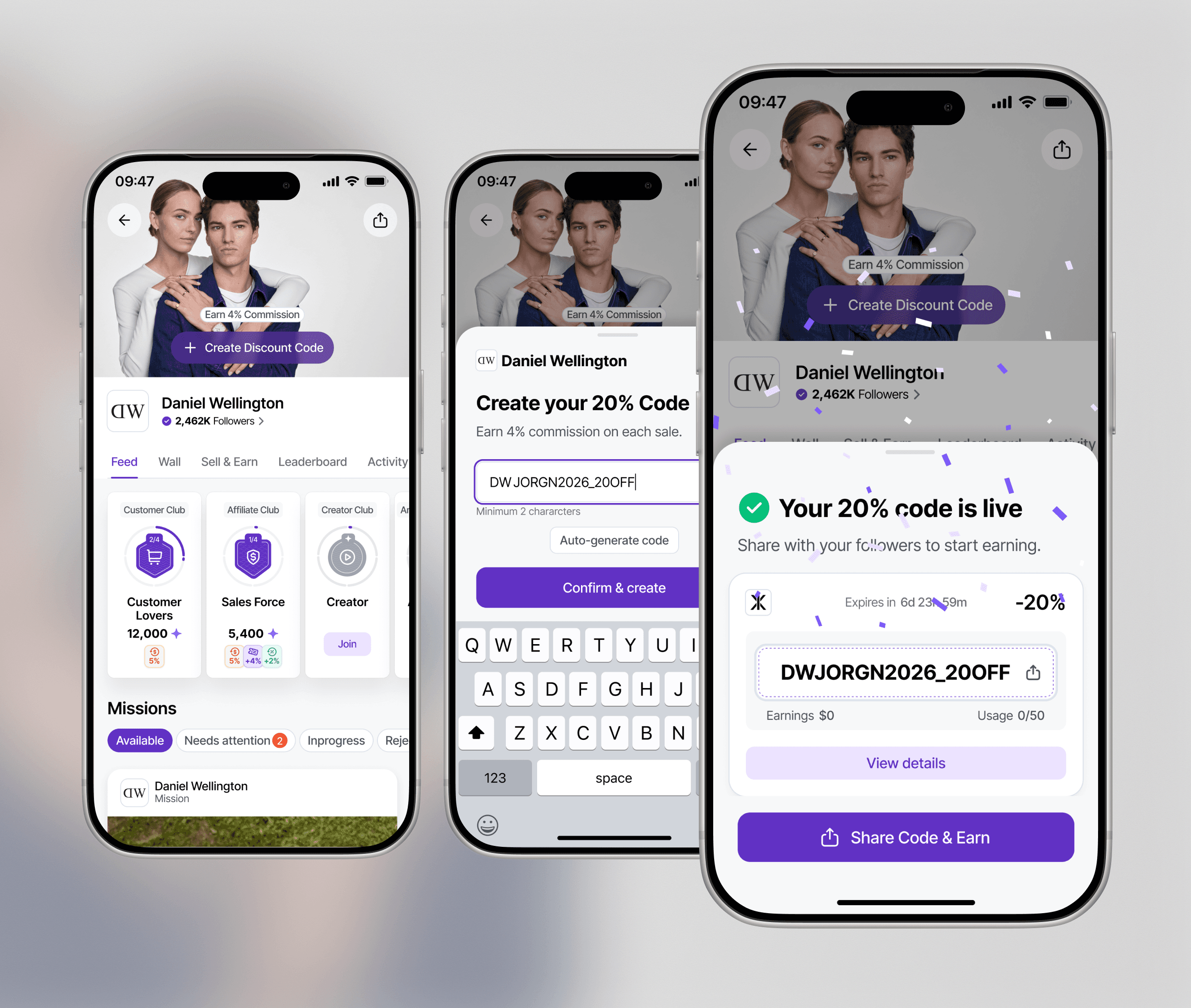 Users move through levels by purchasing, selling, or creating — unlocking increasing rewards, higher commission, and stronger incentives over time.